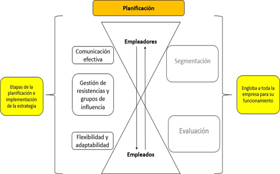 Cada una de estas etapas mencionada se enmarcan dentro del desarrollo de la estrategia de endomarketing, por la naturaleza de la misma se tiene que efectuar de manera constante, para su correcto funcionamiento. Por ese motivo en la siguiente figura se detalla cada una de las etapas de forma dinámica: