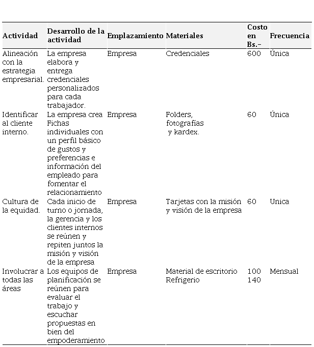 Actividades de la estrategia de endomarketing para fidelizar a los clientes internos