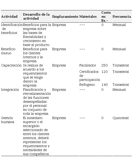 También se pudo identificar que la empresa se apoya en el pago remunerado como principal incentivo para con sus clientes internos, a pesar de que se brindan otro tipo de incentivos que no son considerados como algo de la empresa, ya que el aguinaldo y canastón, que están descritos como parte de los incentivos de la empresa se realizan en distintas instituciones, solo las convivencias recreativas pudiese considerarse como algo propio de la empresa que busca mantener incentivados a los clientes internos.