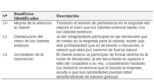 Identificación de beneficios. Los que se procuraran son de crecimiento, económicos y de desarrollo, tanto para la empresa como para los clientes internos.