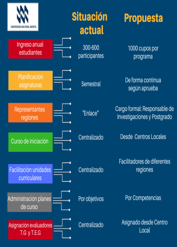 5. Facilitación de las unidades curriculares: se deben incorporar a la facilitación de las unidades curriculares los Responsables de Investigaciones y Postgrado de los Centros Locales, y profesores de las diferentes regiones.