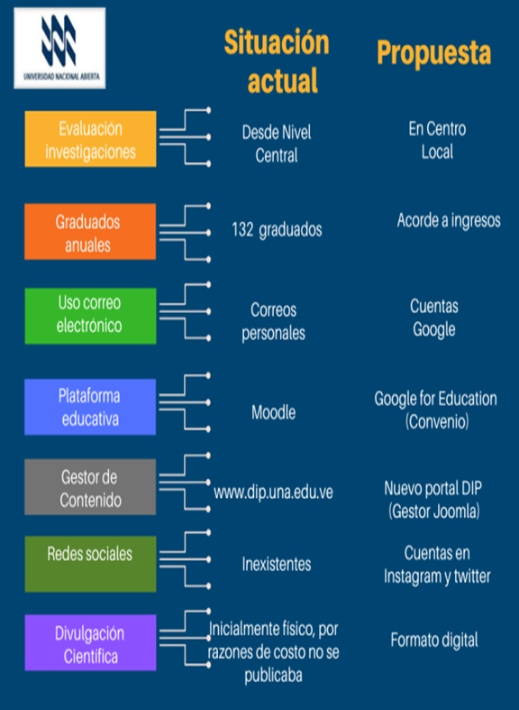 En cuanto a la situación actual de la DIP-UNA, algunos de los fundamentos esenciales para el diagnóstico descriptivo se centraron en la situación previa a las mejoras realizadas: