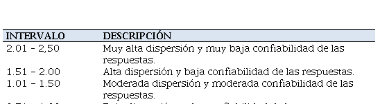 Con respecto a la medida de variabilidad, se empleó la desviación estándar, la cual indica el grado de dispersión de las respuestas y su nivel de confiabilidad, en función de la escala de medición utilizada, tal como se muestra en la tabla 2.