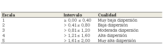 Con base en lo anterior, y según la clasificación metodológica de las técnicas para una investigación de campo se consideró la encuesta. Dentro de este contexto, se seleccionó el cuestionario como instrumento para recolectar la información requerida, elaborado por 11 preguntas cerradas de selección simple con escala de frecuencia, las alternativas de respuesta fueron: (5) siempre; (4) casi siempre; (3) algunas veces; (2) casi nunca y (1) nunca. Por consiguiente, el cuestionario formulado fue sometido a la validez de contenido bajo el juicio de seis (06) expertos en el área metodológica y financiera. Para calcular la confiabilidad del instrumento se utilizó el coeficiente Alpha Cronbach, arrojaron un coeficiente de 0,85 considerado altamente confiable. La técnica de análisis de los datos fue a través de la estadística descriptiva como ciencia, elaborando tablas de distribución de frecuencias relativas de fácil interpretación así como determinando el cálculo de la media aritmética como medida de tendencia central, además del cálculo de la desviación estándar para medir el comportamiento. Para la interpretación de los datos se construyeron dos baremos los cuales se muestra en la tabla 2 y 3.