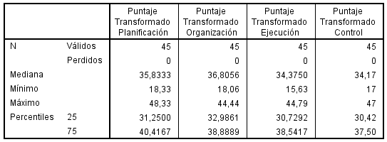 Para el presente estudio los datos se recolectaron mediante la técnica de la encuesta con un cuestionario tipo escala, cuya confiabilidad se calculó mediante el coeficiente alfa de Cronbach con un resultado de 0,98, lo cual indicaba que era altamente confiable. Para el análisis de los datos se aplicó la estadística descriptiva. El tratamiento estadístico se realizó a través del cálculo de la mediana, con la aplicación del software SPSS.