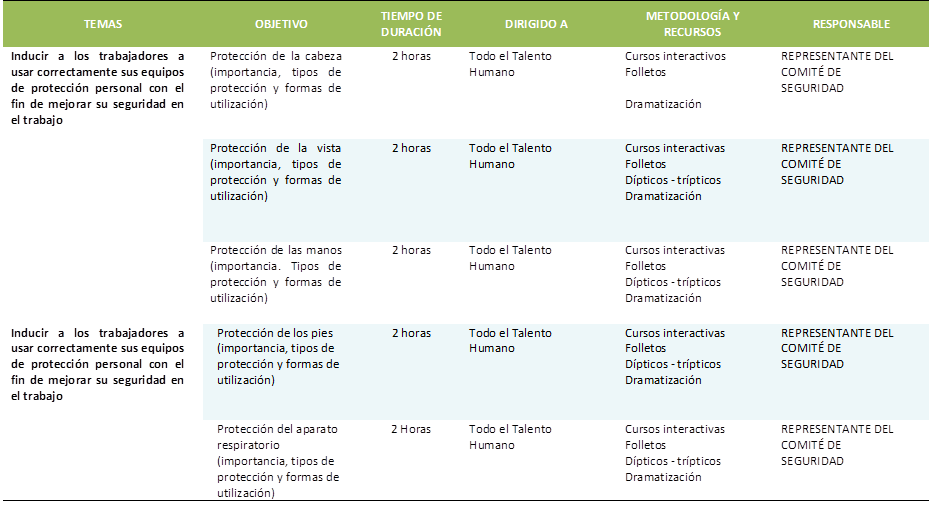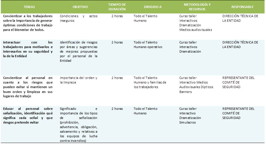 Para ello se elaboró el siguiente temario como una herramienta de apoyo para los encargados de la capacitación operativa, con el propósito de habituar a los trabajadores a hablar de seguridad en el puesto de trabajo e involucrarse en tareas preventivas.