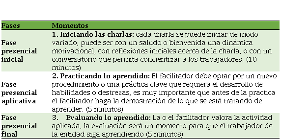 Creación de cultura o conciencia de seguridad: Para este punto, se propone ejecutar “charlas de seguridad” conversando generalmente sobre la prevención de riesgos laborales.