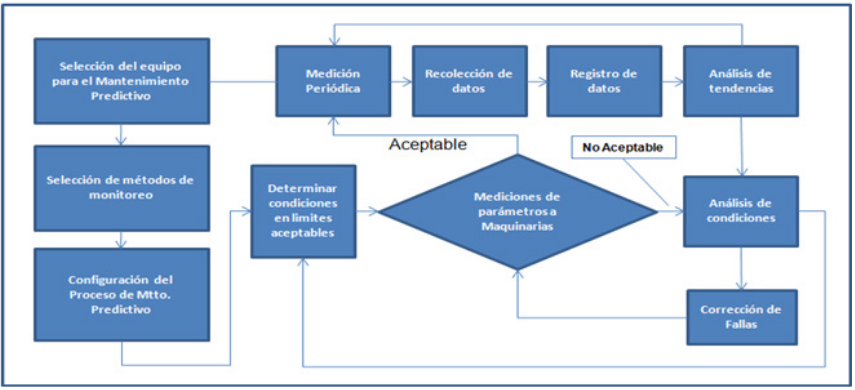 En el mismo orden de ideas, Torres (2005) define el mantenimiento de tipo predictivo como el análisis de parámetros de funcionamiento cuya evolución permite detectar un fallo de un equipo o sistema antes de que este tenga consecuencias más graves. Adicionalmente, la característica primordial de este tipo de mantenimiento es que no debe alterar el funcionamiento normal de la planta durante su aplicación.
