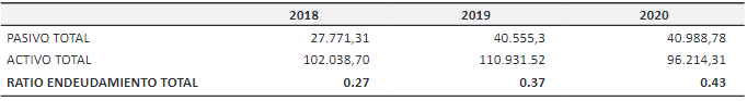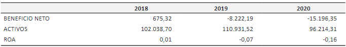 Conforme a la estrategia metodológica propuesta, esta dimensión se evalúa a través del ROA y del indicador de endeudamiento. La Tabla 3 presenta los resultados para la rentabilidad de activos, los hallazgos muestran que el ROA creció menos que la inflación con un promedio de -0.07%, mientras que la inflación promedio en el periodo 2018-2020 fue de -0.099%1.