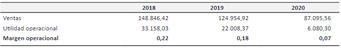En el ejemplo de aplicación, el margen operativo presenta disminuciones considerables, debido a las restricciones en la comercialización de algunos productos por la crisis sanitaria a nivel mundial, pasando de un 18% en el año 2018 a un 7% en 2020. Por tanto, el crecimiento de la organización se puede ver amenazado por falta de capital. En resumen, los datos obtenidos indican un problema de sostenibilidad financiera en la organización, ya que las empresas requieren del incremento de las ventas y una gestión optima de los costos y gastos para garantizar su permanencia en el mercado; tal como lo menciona Ortiz (2011).