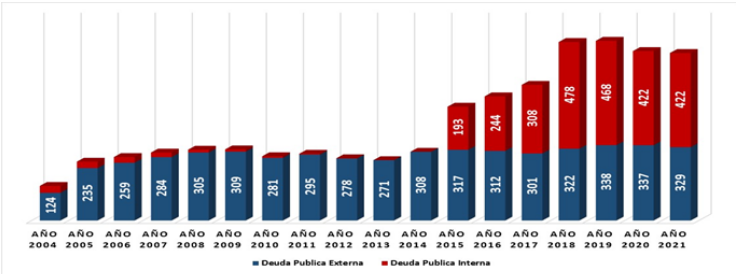 La deuda es una herramienta del gobierno para diferir sus gastos en el tiempo y así poder cumplir el conjunto de funciones que le son encomendadas. A decir de CEPAL (2022, p.1) “La deuda pública se refiere a los montos adeudados por los diferentes niveles de gobierno y que se utiliza para financiar los déficits públicos resultantes de programar un mayor nivel de gasto público que los ingresos presupuestados”. Un concepto nacional lo vierte el (Ministerio de Economía y Finanzas Públicas, 2012, p. 5) “es el dinero que el Estado toma prestado de instituciones internacionales o nacionales para pagar gastos de prioridad nacional y acelerar el crecimiento”.