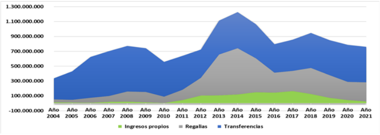 El incremento sustancial de los ingresos por concepto de regalías hace que los ingresos totales lleguen a niveles nunca vistos en el periodo 2012 – 2015, siendo este un punto de inflexión que derivó en un incremento excesivo del gasto corriente y del gasto de capital (inversiones).
