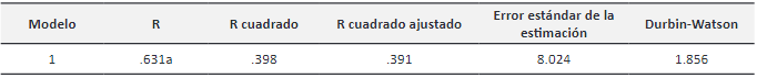 La Tabla 4 expresa los resultados del resumen del modelo.
