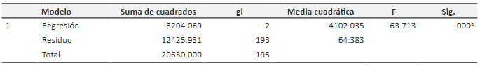 Finalmente, en la Tabla 6 se muestran los valores del modelo con los coeficientes de regresión.