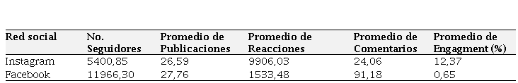 Luego de revisar las publicaciones de los restaurantes de la lista definitiva, se estableció que Instagram y Facebook eran las redes con mayor preferencia de uso. Después en ambas redes sociales, se calculó el promedio de las siguientes variables: seguidores, publicaciones, reacciones, comentarios, porcentaje de engagement. La fórmula utilizada para calcular el engagement fue la siguiente: