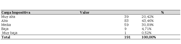 Los resultados muestran que la carga impositiva afecta significativamente en la liquidez de las empresas, aspecto que concuerda con los resultados del estudio de Quispe y Ayaviri, (2021) en el que manifiestan que el 47.7 % señala que las tasas de los impuestos son altas, el 45.6 % establece que paga varios tipos de impuestos y el 44 % manifiesta que afecta sus ingresos.
