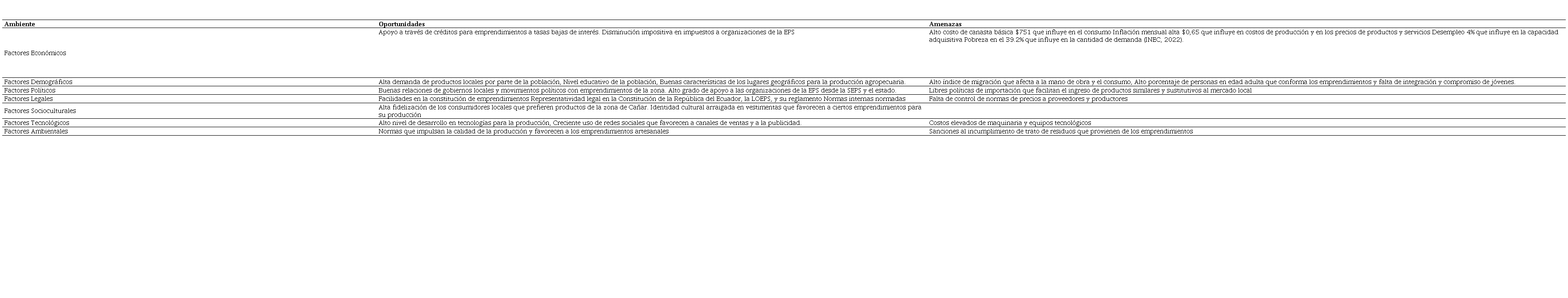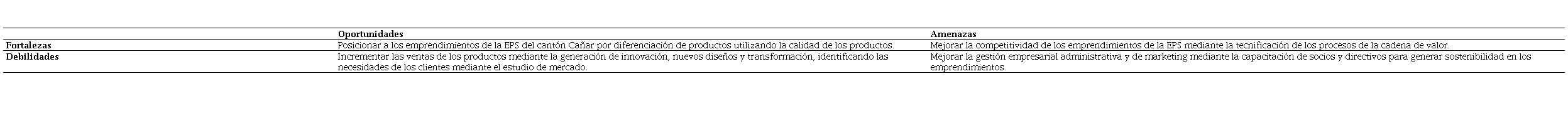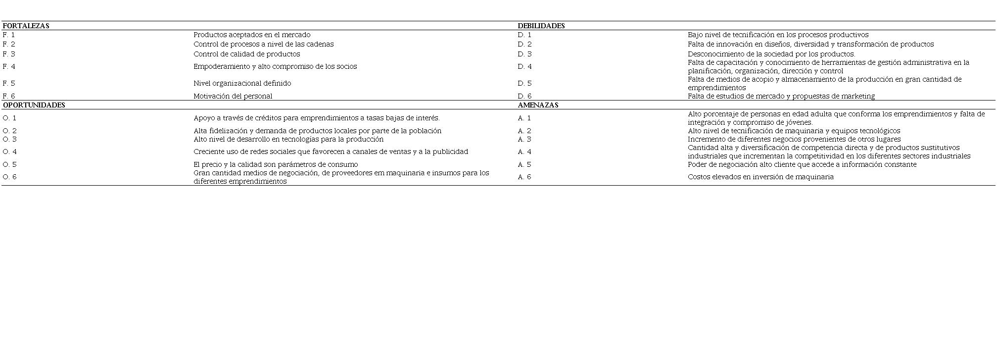 A continuación, se muestra un diagnostico en base a la metodología FODA Emprendimientos de la Economía Popular y Solidaria (EPS) en el cantón Cañar.