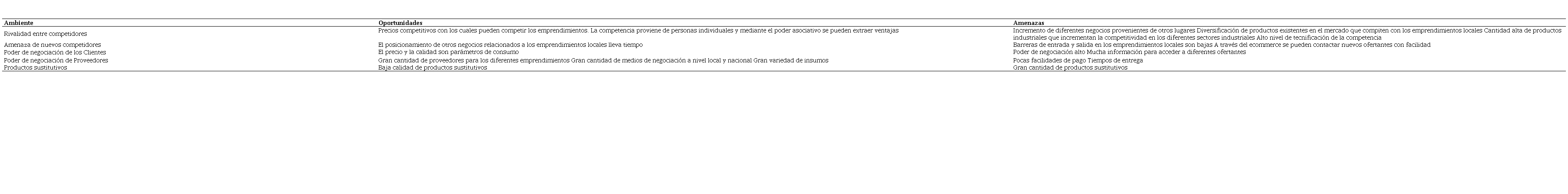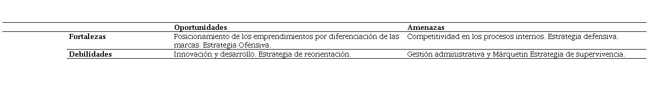 Por otra parte, en la variable competitividad de los emprendimientos, se pudo observar una amenaza que es el crecimiento de la competencia de otros lugares, las cuales pueden ser enfrentadas con la práctica de calidad en servicios y productos, por lo que es necesario hacer un diagnóstico de la competitividad del mercado, identificar aquellas fortalezas de los emprendimientos, mejorar las debilidades, mitigar amenazas y aprovechar oportunidades, ello sirve para tomar decisiones en el bien de los emprendimientos (Portugal, 2017).