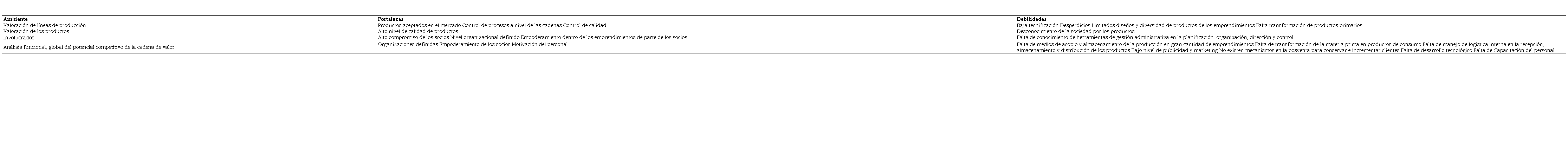 Además, se pudo evidenciar que deben ser atendidas actividades como la capacitación de sus socios en áreas administrativas, ventas y marketing, el acceso a créditos, la tecnificación de sus procesos, la construcción de herramientas de gestión administrativa, la generación de innovación, desarrollo y transformación de sus materias primas para generar productos competitivos, capaces de aprovechar las bondades de calidad que presentan.
