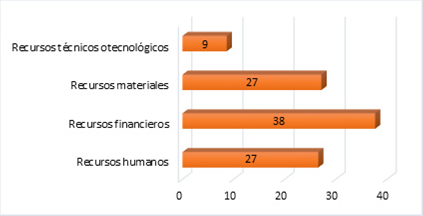 De acuerdo con la Figura 6 los estudiantes consideran que los recursos más importantes para poder implementar un negocio son: los recursos financieros (38%), los recursos materiales (27%) y luego los recursos humanos (27%)