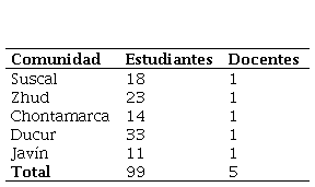 Fue construida una investigación bajo el enfoque cuantitativo, de nivel descriptivo, puesto que, buscó caracterizar los emprendimientos a partir de proyectos de Bachillerato General Unificado, a través de la descripción de los factores que influyen es su concreción o implementación. Según su diseño, se trata de una investigación de campo, la cual consistió en la recolección de datos directamente de la realidad donde ocurren los hechos, sin manipular o controlar variable alguna. La población de estudio estuvo compuesta por los estudiantes matriculados en el Bachillerato General Unificado del período lectivo 2022-2023 en las instituciones educativas de las comunidades de Suscal, Zhud, Chontamarca, Ducur y Javín, pertenecientes a la provincia de Cañar. La muestra se conformó tomando una institución educativa de las cinco comunidades, de las cuales se consideró un curso de bachillerato y un docente, obteniendo un grupo de estudio con 99 estudiantes y 5 docentes, cuya distribución se detalla en la Tabla 1