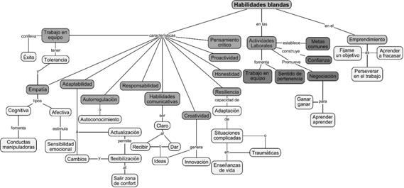 En el emprendimiento las habilidades blandas son esenciales porque benefician las relaciones interpersonales y dan solución a determinadas situaciones que pueden incomunicar el flujo habitual del trabajo y con ello contraponer el desarrollo de cualquier proyecto organizacional y su meta productiva (Domínguez, 2021; Flores et al., 2022). La Figura 1, ilustra las habilidades blandas: características, ámbito laboral y de emprendimiento. Por ello, el desarrollo de las habilidades blandas es crucial tanto en lo académico como laboral. Es decir, las empresas integran personas dinámicas con creatividad, capacidad de propuesta que se adapten, empoderen, emprendan y reaccionen favorablemente a las adversidades que puede generarse dentro de una organización (Espinoza y Gallegos, 2020; Rodríguez et al., 2021; Vázquez et al., 2022).