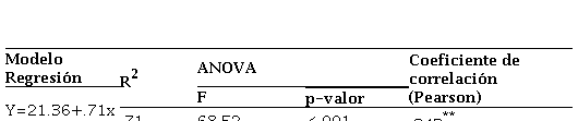 En la Tabla 3 se destaca que el coeficiente de determinación establece que el 71% de la variabilidad en el comercio internacional se debe a la influencia del marketing digital, así mismo el modelo de regresión indica que por cada unidad que aumenta el marketing digital, el comercio internacional aumenta en 0.71 puntos, también el análisis de varianza (ANOVA) tiene un p-valor de .000 menor que .01, por lo que el modelo encontrado es adecuado, es decir el marketing digital influye significativamente y de manera positiva en el comercio internacional. Además, según el coeficiente de Pearson (.843) existe una correlación positiva alta entre las variables