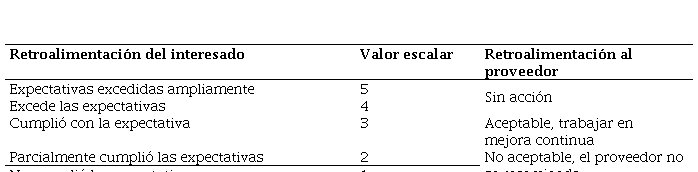 Una vez entendidas las expectativas y las necesidades de cada área, surgió la pregunta, ¿Cómo se asegura de que los proveedores cumplan con estas expectativas?, sinceramente no había una forma realista ya que no hay una escala definida a que se le puede dar mayor importancia debido a que esto queda en una escala cualitativa del stakeholder involucrado, para lo que se procedió a generar una lista de requerimientos utilizando la escala de Likert como herramienta, la cual nos permite evaluar de forma cualitativa a un nivel de satisfacción y alinearlo a las expectativas de las partes interesadas, esta escala se dividió en cinco niveles de satisfacción, que fueron