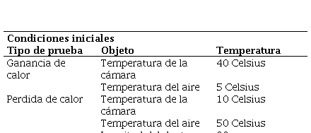 Los ductos entraron a una cámara térmica para entender la capacidad de mantener la temperatura, esta simulaba el medio ambiente donde se encontrarían y después se les inyecto aire simulando el sistema de aire acondicionado de los autos, las condiciones se muestran en la Tabla 2 y Tabla 3.