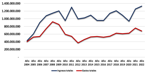 Examinar los ingresos y gastos a lo largo de veinte años revela patrones cíclicos y tendencias discernibles. El estudio de los ingresos permitió observar la capacidad de recursos disponibles para cumplir con las obligaciones de deuda, mientras que el análisis del gasto reveló oportunidades potenciales de ahorro en términos de volumen de gasto