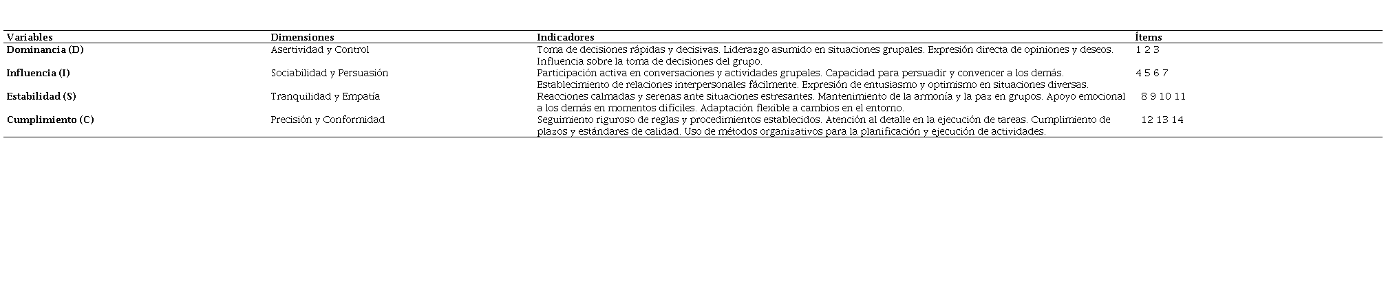 Las dimensiones, variables, e indicadores con su correspondiente operacionalización se muestran en la Tabla 1.