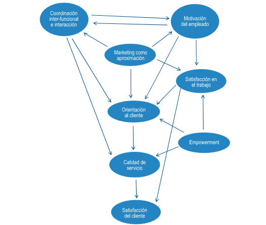 Los autores coinciden en la motivación y satisfacción de los empleados en su actuar y participación en los procesos que realizan dentro de la empresa, aportan elementos necesarios al endomarketing, sin embargo, entre ellos divergen algunos aspectos, por ejemplo, E. Berry considera al empleado como un cliente de modo interno, incluso refiere que para que se encuentren satisfechos deben ser entrenados y ser comprendidos. Para Grönroos (1994), determina los mecanismos a través de herramientas para motivar a los empleados, como el adiestramiento y participación Figura 2.En cambio, para Rafiq y Ahmed (1993) relacionan la satisfacción y la motivación de los empleados en relación a las actividades integrales de la organización, logrando la satisfacción del cliente externo (Figura 3).