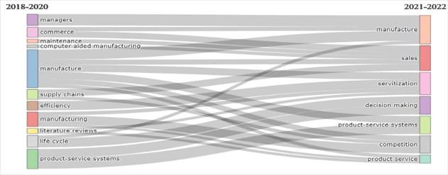 Al analizarse los tópicos de tendencia relacionados con la servitización desde el año 2018 hasta el 2022 mediante la herramienta Bibliometrix, se obtuvieron los resultados que se muestran en la Figura 3.