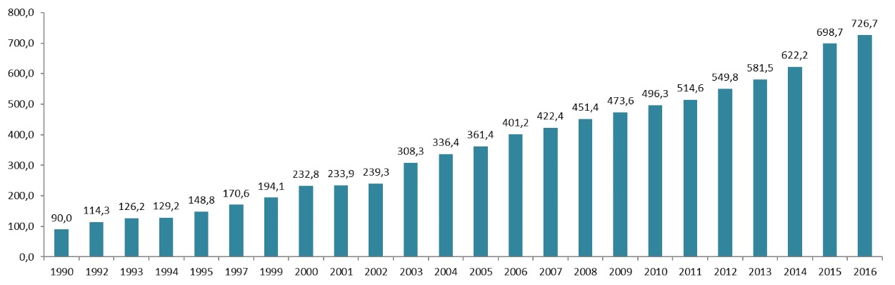 O grande encarceramento guarda relação com a criminalização crescente do Estado a partir da legislação antidrogas. Em 1990, o Brasil contava com aproximadamente 90 mil pessoas privadas de liberdade. Em 2016, durante o governo ilegítimo de Temer, o país torna-se o terceiro do mundo com maior população penitenciária, acompanhando uma tendência de crescimento sem precedentes desde a década de 1990, com mais de 700 mil pessoas privadas de liberdade (Figura 1).