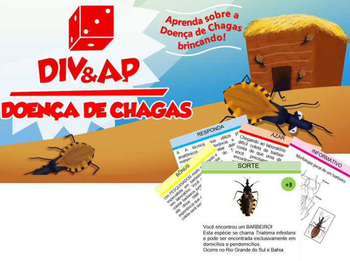 O jogo foi intitulado DIV&AP - Doença de Chagas levando em consideração os conceitos de diversão e aprendizagem, segundo os quais o aluno pode adquirir conhecimento brincando. Foi elaborado com base nas 65 espécies de triatomíneos que têm ocorrência no Brasil, utilizando, como literatura de base, dois livros: Doença de Chagas e seus principais vetores no Brasil (COSTA et al., 2008) e Vetores da doença de Chagas no Brasil (GALVÃO, 2014) que, além de especificarem e darem as características de cada espécie, detalham os aspectos históricos, as formas de transmissão, a morfologia dos triatomíneos, assim como a situação da doença de Chagas no Brasil.
