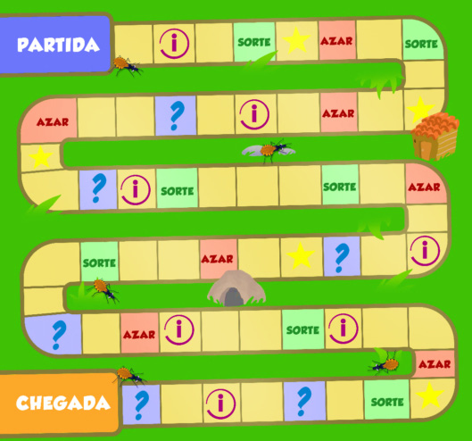 As cartas (Figura 1) são de cinco tipos: Sorte, Azar, Bônus, Informativo e Responda.