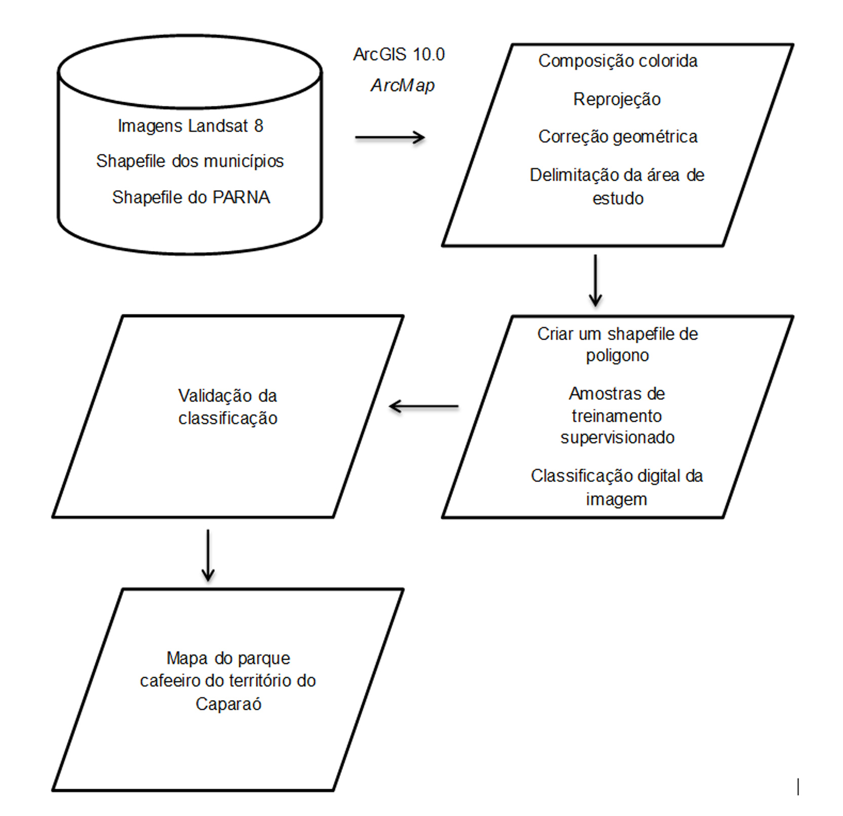 Sendo assim, o presente trabalho tem como objetivo mapear as lavouras cafeeiras nos municípios do entorno do Parque Nacional do Caparaó, utilizando imagens orbitais do sensor Operational Land Imager (OLI) do satélite Landsat-8.