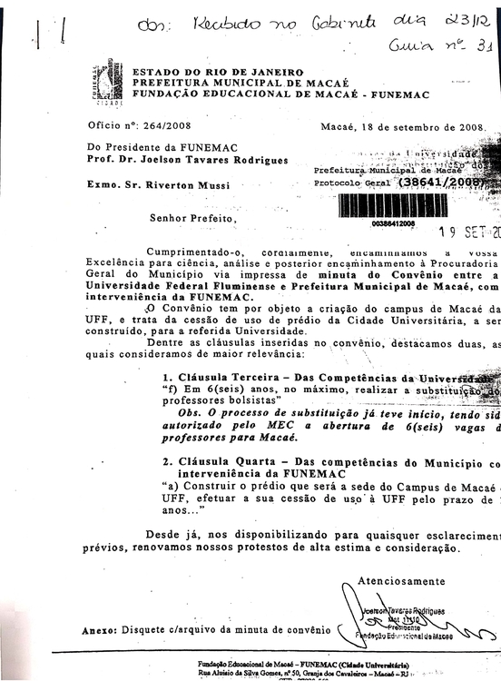 MEROLA, E. UFF e UFRJ são as novas inquilinas da Cidade Universitária de Macaé. O Globo, 3 mar. 2012. Disponível em: https://oglobo.globo.com/sociedade/educacao/uff-ufrj-sao-as-novas-inquilinas-da-cidade-universitaria-de-macae-4156527. Acesso em: 6 out. 2020.