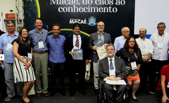 Como primeiro resultado desse engajamento, em 26 de junho de 2019, ocorreu o lançamento do livro “Macaé, do caos ao conhecimento” (Figura 2), composto de 34 artigos multidisciplinares, desenvolvido por 68 pesquisadores, na Feira Brasil Offshore, onde estiveram presentes: