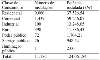 A pesquisa, também, mostrou que as classes residencial e comercial foram as que obtiveram o maior número de instalações e potência instalada de GD por ESFV, posto que ela tem uma facilidade de implementação nesses tipos de consumidores da ESFV se comparada às outras fontes de energia, por exemplo a eólica.