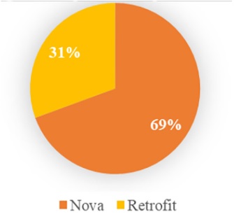 Na Figura 6 é possível verificar os tipos de obra em que foi aplicada a tecnologia de fachada ventilada opaca. Percebe-se que existem mais empreendimentos novos do que reformados (retrofit) com a tecnologia instalada.