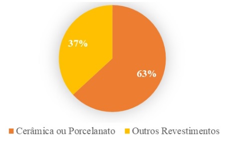 Com a análise de todos os empreendimentos, percebeu-se que a maioria (63%) utiliza como revestimento externo a cerâmica, seja ela cerâmica extrudada ou porcelanato (Figura 7); os outros 37% utilizam como revestimento placas fenólicas, concreto polímero e fibrocimento (Quadro 4).