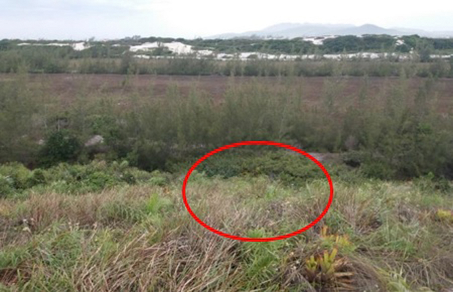 Para seleção da Restinga do Foguete como área de estudo levou-se em consideração a segurança do equipamento, pois sua localização permitiu que o equipamento fosse verificado diariamente pela equipe. Na Figura 8 consta a imagem da Restinga do Foguete e, em evidência, está circulada a moita em que o equipamento foi instalado.