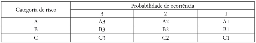 Enquanto isso, Oliveira (1999) estabelece uma matriz de critério para priorização das ações que utiliza como referência a severidade do risco e a probabilidade de ocorrência (Quadro 3).