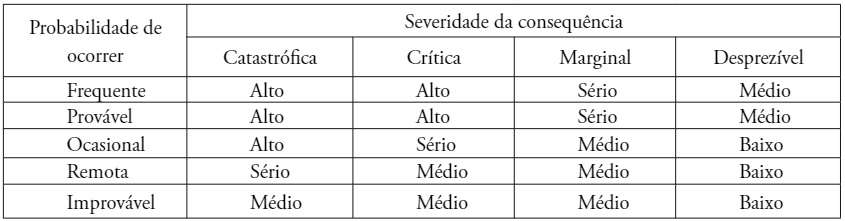 Manuele (2008) estabelece, por meio de modelos de gestão descritos em normas americanas, um modelo de matriz de risco (Quadro 4).