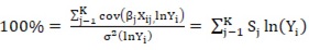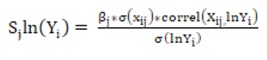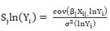 (6)Como pode ser visto, o que se nota no método de decomposição, a partir da formulação (6), é a importância da correlação entre as variáveis independentes e a variável dependente. Em outras palavras, uma variável independente pode contribuir para a desigualdade dos salários mesmo obtendo uma distribuição mais uniforme. Uma vez que esta variável possui um alto grau de correlação com a variável dependente, ainda que apresente uma distribuição com dispersão bastante baixa, a sua participação na desigualdade de renda pode ser bastante relevante. De modo similar, caso a variável apresente distribuição desigual, mas possua baixa correlação com a variável dependente, a contribuição para a desigualdade de renda pode ser pequena.