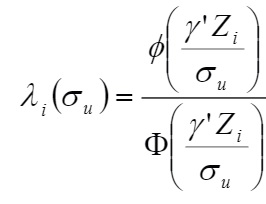 e ϕ e Φ são, respectivamente, a função densidade normal e a função distribuição normal. Na literatura, λi(σu) é conhecido como a razão inversa de Mills.