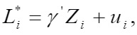 (7)em que L*ié uma variável (latente) que representa participação no mercado de trabalho; Zi é um vetor de variáveis que explica a participação ou não do indivíduo na força de trabalho; γ é um vetor de coeficientes a ser estimado; e ui é o termo de erro aleatório com distribuição normal.