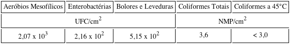 Foram realizadas contagens de bactérias aeróbias mesofílicas, bolores e leveduras, enterobactérias, bactérias coliformes totais e coliformes a 45 ºC. Todas as análises foram realizadas segundo metodologias descritas no Compendium of Methods for the Microbiological Examination of Foods (APHA, 2001).