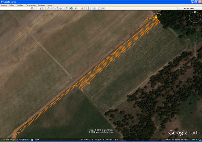 Figure 1 shows the area of study, where the mechanical harvest of the sugar cane and the fuel consumption measurement were carried out, represented by a Google Earth image, which shows the orange trail of the harvester gotten through the GPS, model Garmin 60Csx.